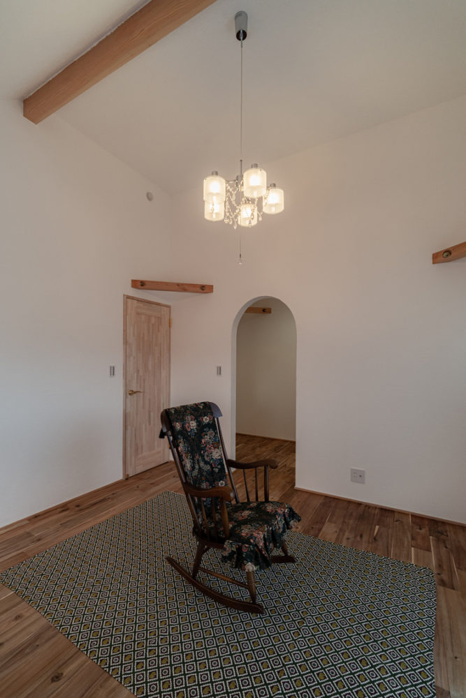 吹抜空間の醍醐味 シーリングファンと内窓と無垢の化粧梁のコラボ