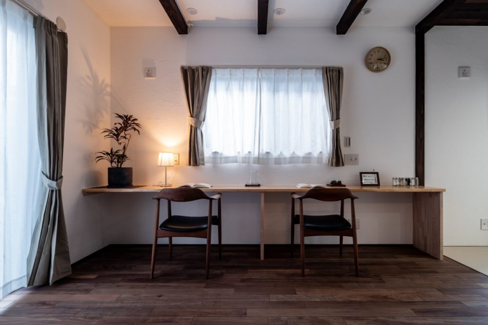 シンプルにカウンターだけを設置したワークスペースは、ご自身でカスタマイズ可能です