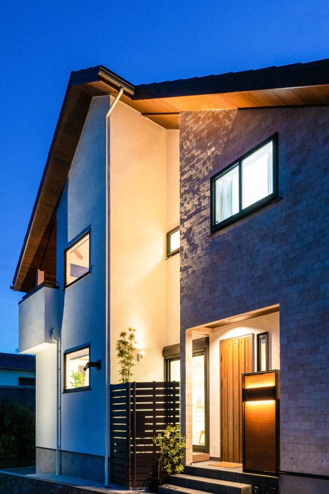 漆喰とコーラスストーンが印象的なファサード