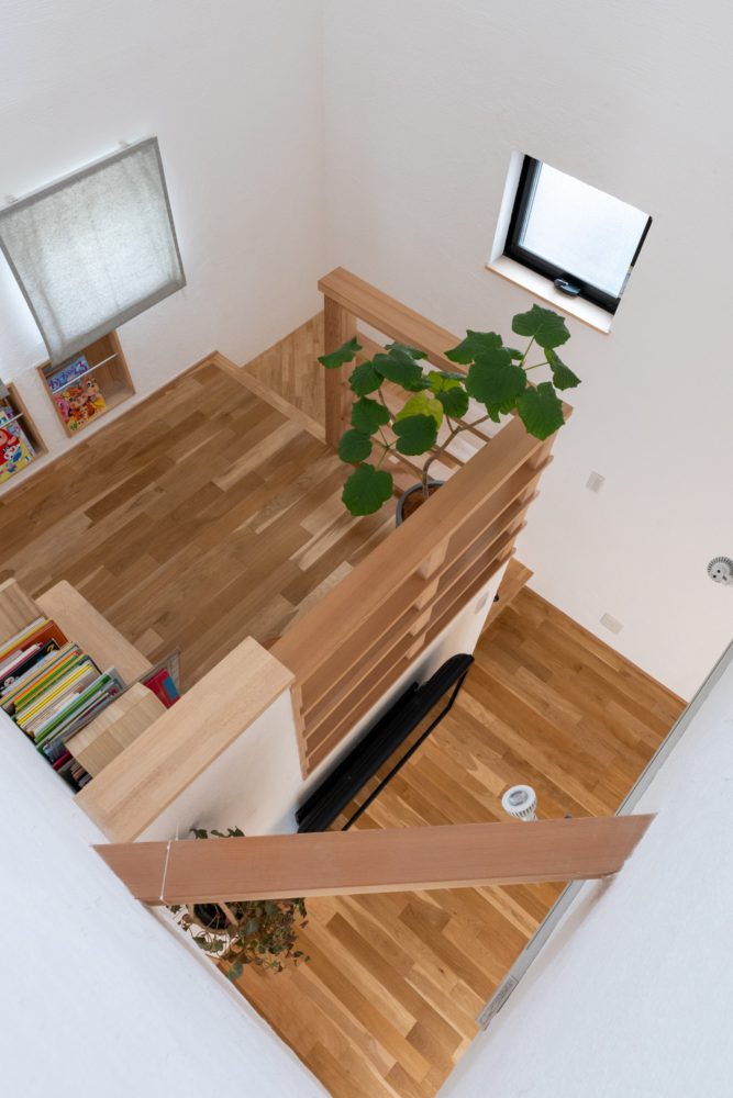 吹き抜けには、ファンを取付、空気を攪拌させることで、温度ムラをなくすようにしている。
